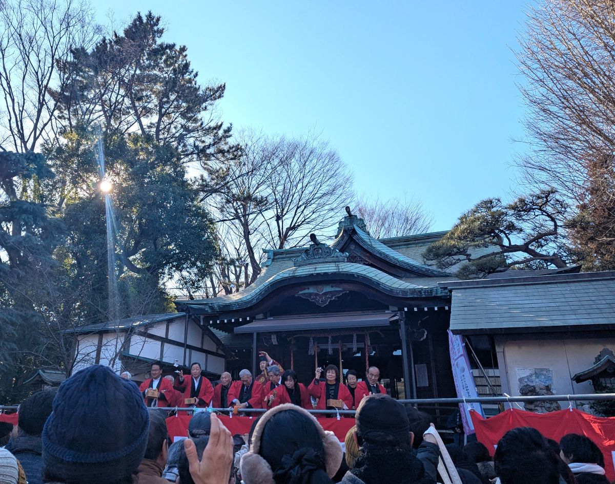 小岩神社(江戸川区東小岩6)で2月3日、今年も節分祭豆まきが行われた。