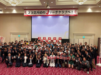 江戸川区をホームタウンとしてJリーグ加盟を目指す「東京23FC」が2月28日、タワーホール船堀(江戸川区船堀4)で2026新体制発表会を開き、クラブビジョンやスローガン、14人の新加入メンバー、新ユニホームなどを発表した。