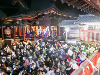 小岩神社(江戸川区東小岩6)で2月3日、今年も節分祭豆まきが行われた。3回に分けて行い、近隣在住の「年男年女」らが拝殿から福豆をまいた。訪れた人々はにこやかに拝殿に向かい手を伸ばし、「福つかみ」を楽しんだ。