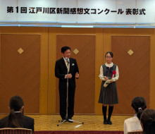 「第1回江戸川区小中学校新聞感想文コンクール」の表彰式が12月6日、グリーンパレス(江戸川区松島1)で行われた。
