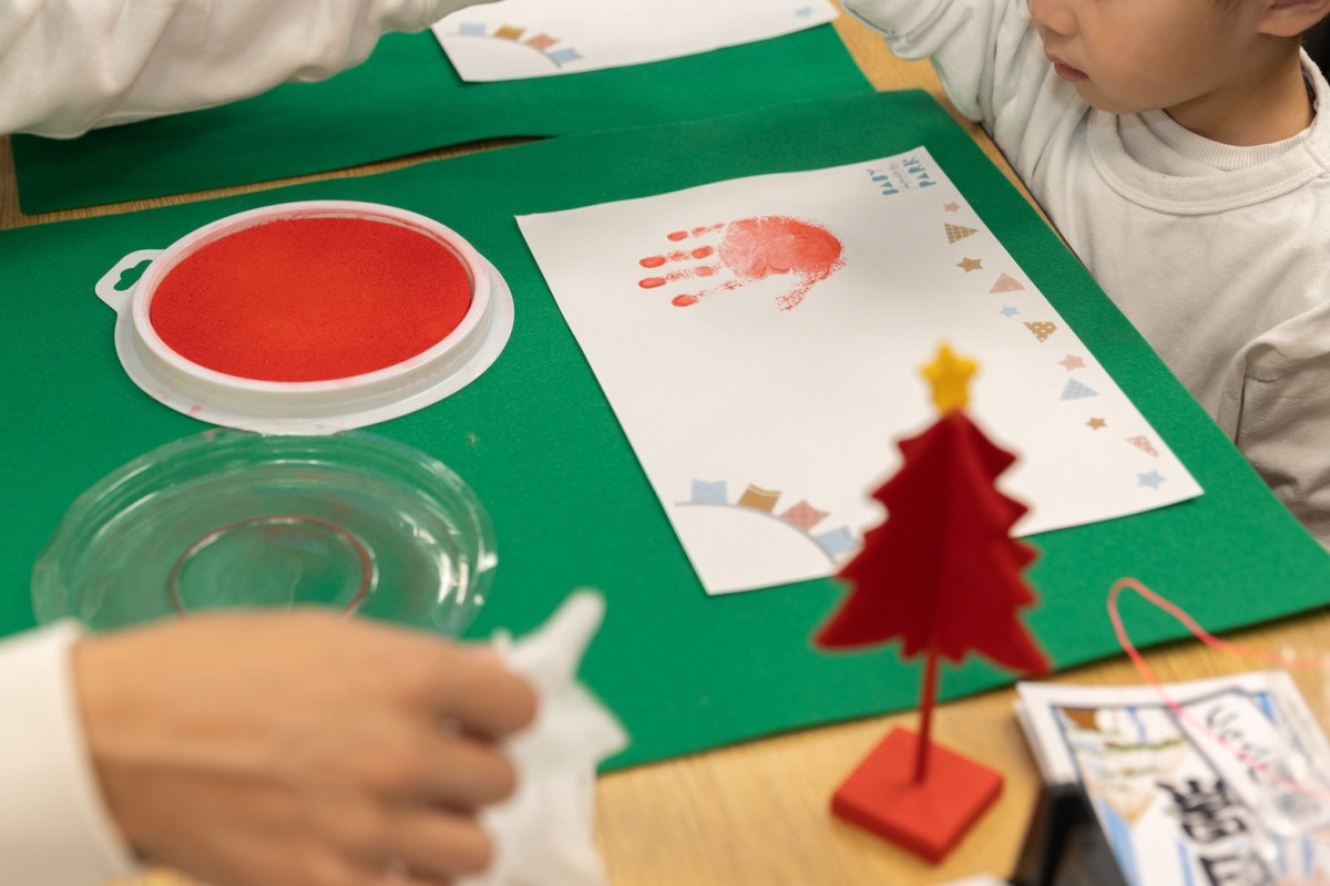 ブースエリアでは、手形・足形スタンプや缶バッジ作りなどのワークショップも