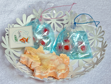 宿泊者には金魚すくい飴(あめ)や金魚型バスボム、ステッカーなどを用意する(写真提供=H.I.S.ホテルホールディングス)