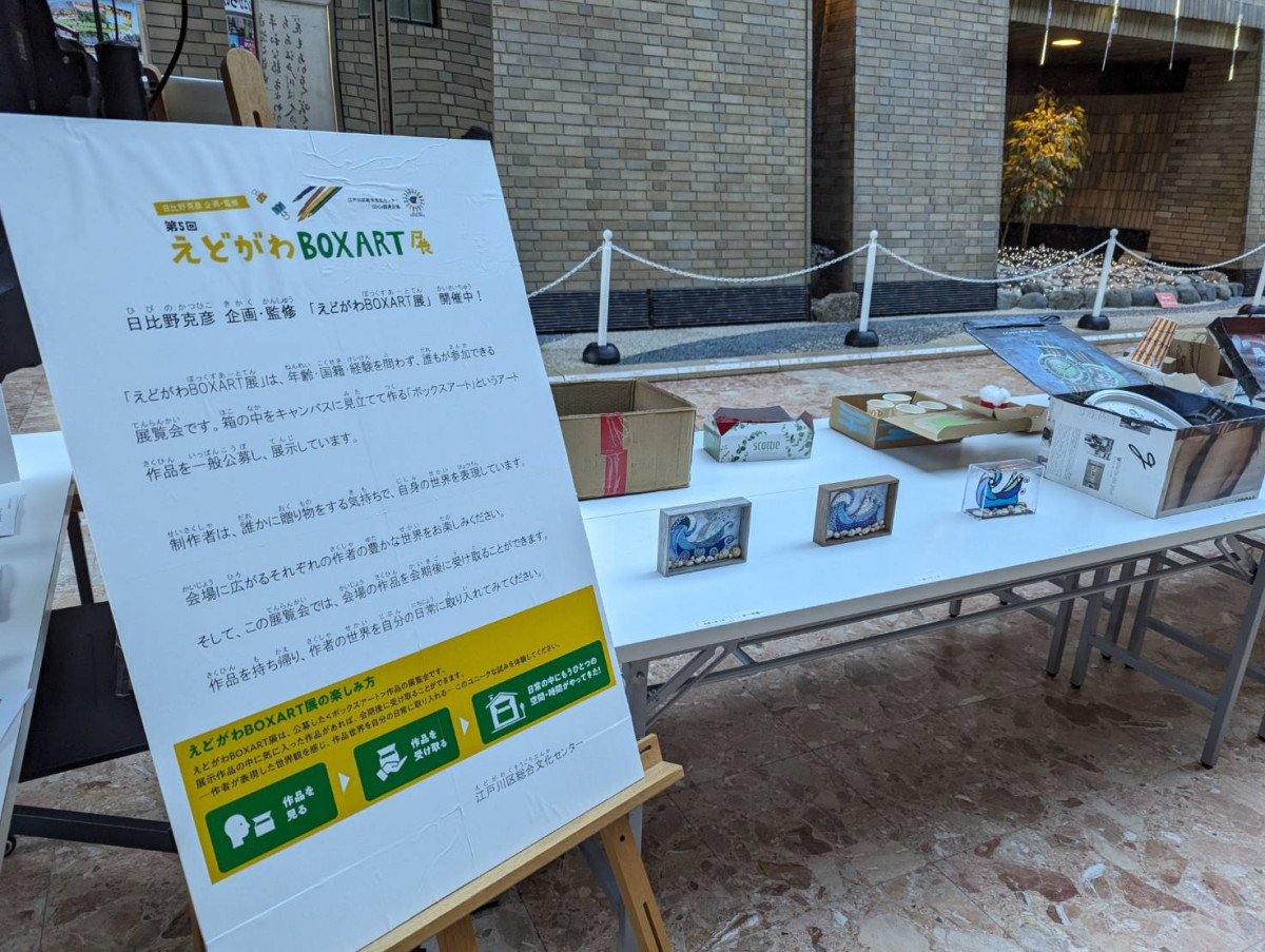 東京芸術大学学長でアーティストの日比野克彦さんが企画・監修する「えどがわBOXART展」の作品展示が現在、江戸川区総合文化センター(江戸川区中央4)1階中央ロビーで行われている。