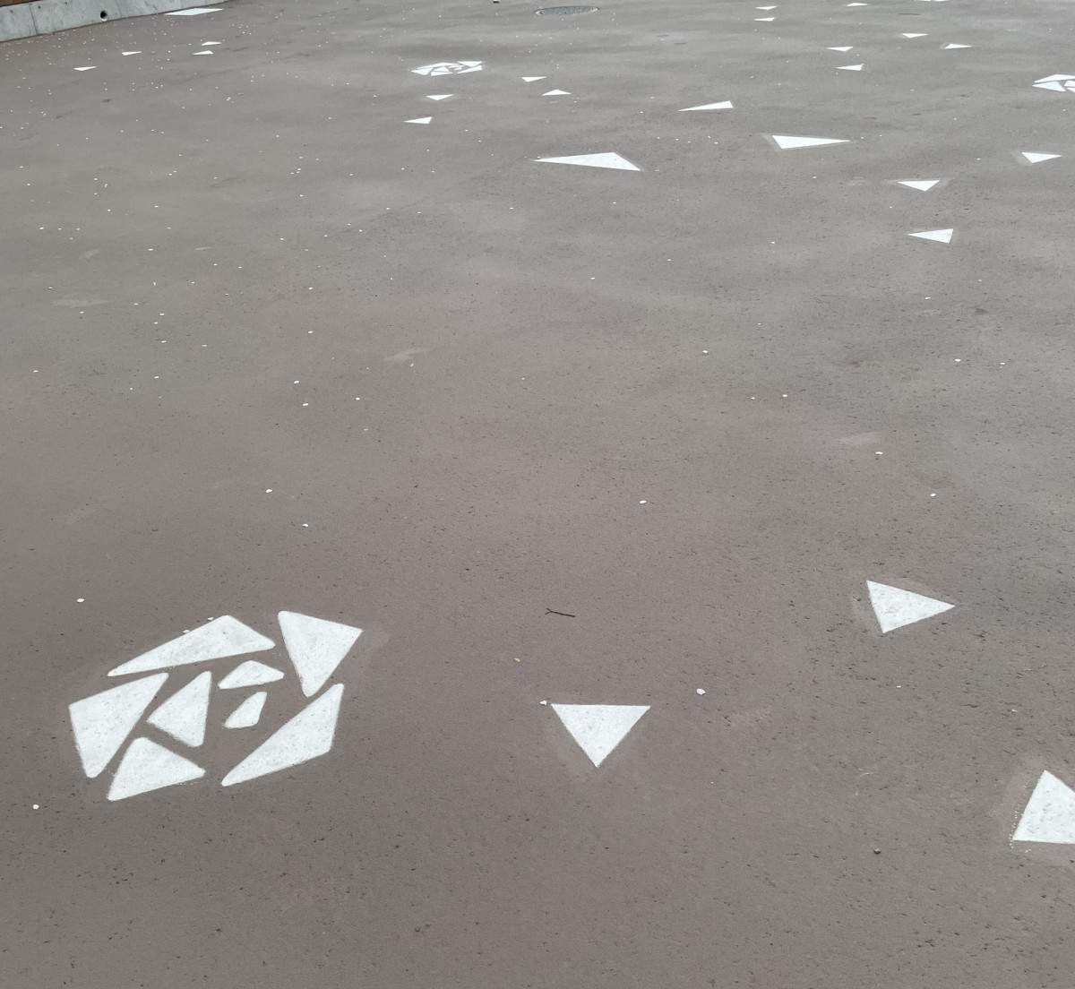 噴水の周りにはフラワーガーデンの名所であるバラ園のモチーフがデザインされている。